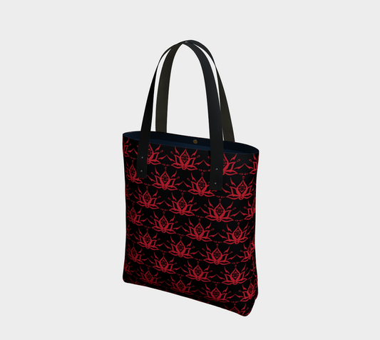 Black and Red Lotus Tote