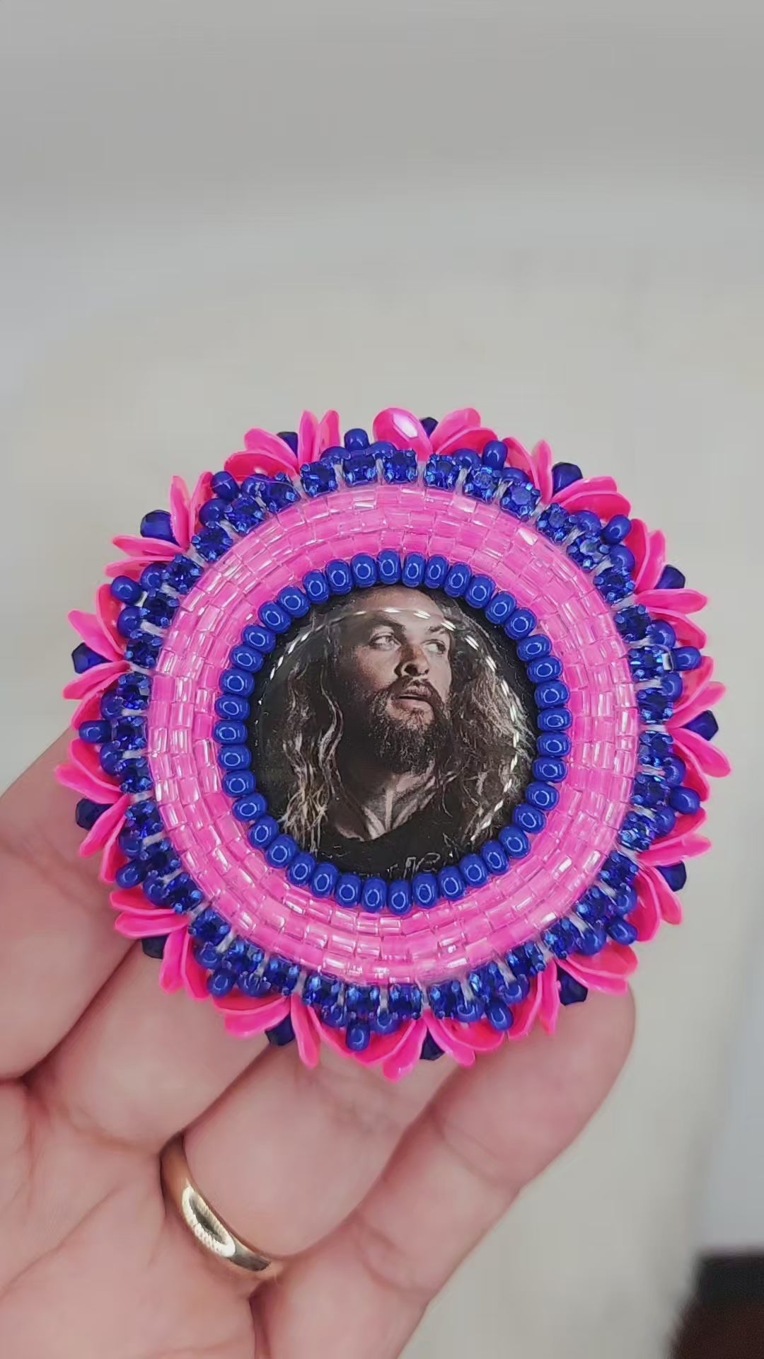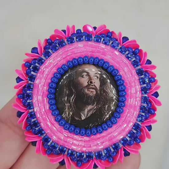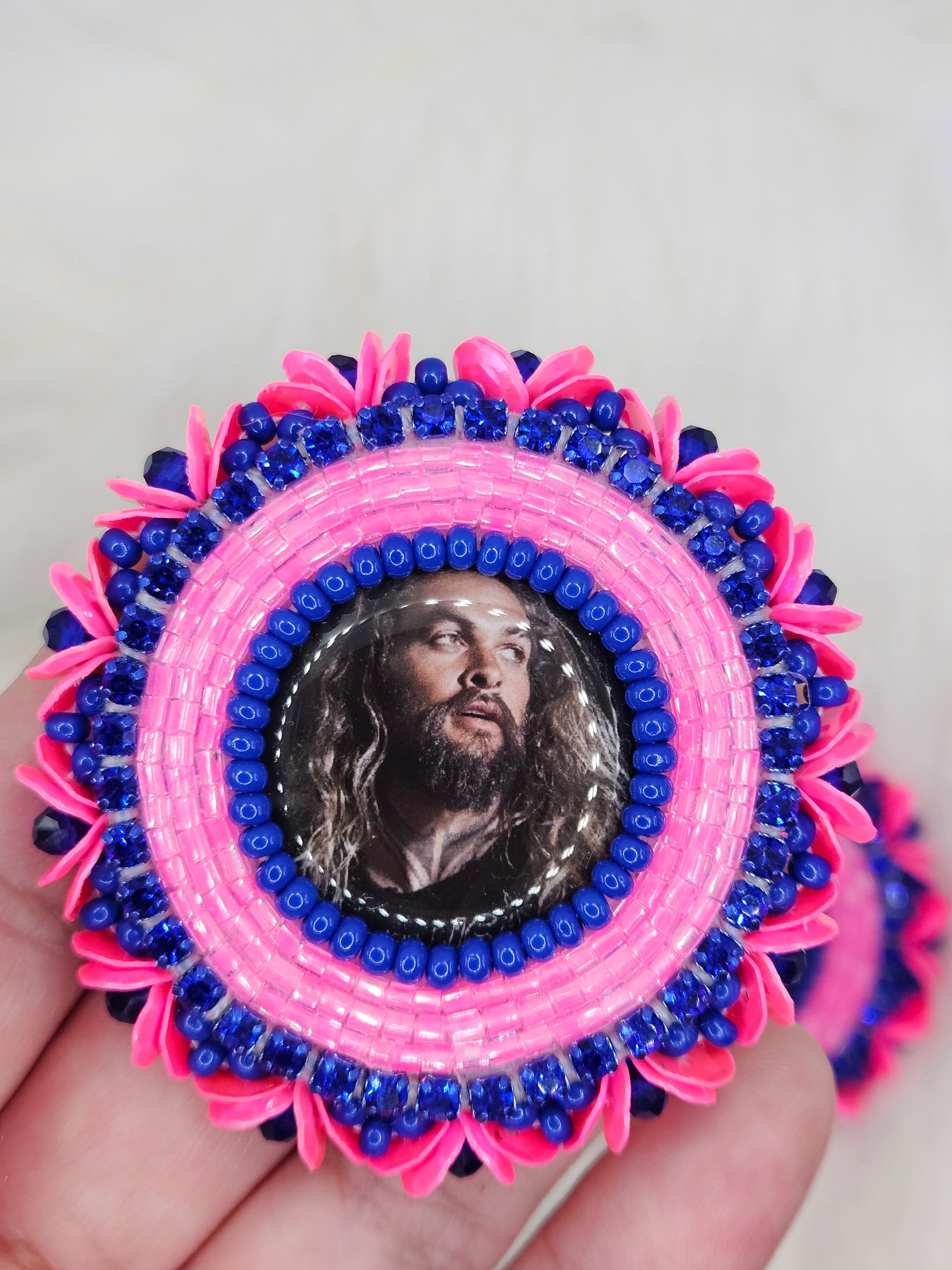 Rock these royal blue and neon pink stud earrings with confidence, featuring the one and only Jason Mamoa. The blue rhinestone chain and pink neon beads give a pop of colour, with neon pink sequin edging for added flair. Perfect for when you want to stand out and embrace your playful side!